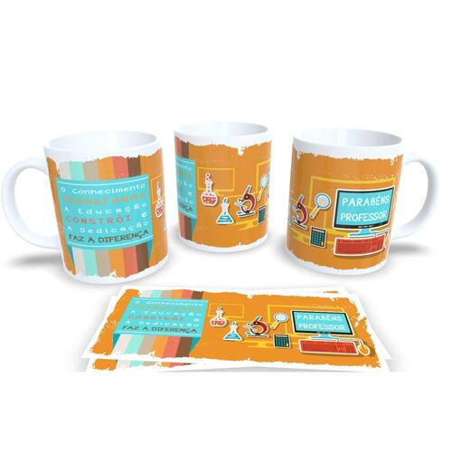 Caneca personalizada de porcelana de alto brilho, com interior e Alça branca Coleção dia dos Professores.