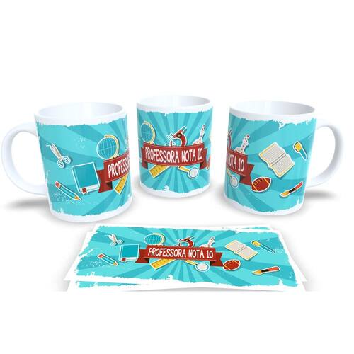 Caneca personalizada de porcelana de alto brilho, com interior e Alça branca Coleção dia dos Professores.
