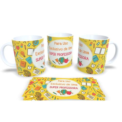 Caneca personalizada de porcelana de alto brilho, com interior e Alça branca Coleção dia dos Professores.
