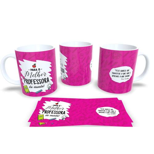 Caneca personalizada de porcelana de alto brilho, com interior e Alça branca Coleção dia dos Professores.