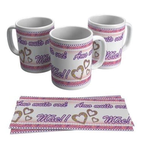Caneca personalizada de porcelana de alto brilho, com interior e alça branca com linda Estampa do dia das Mães.