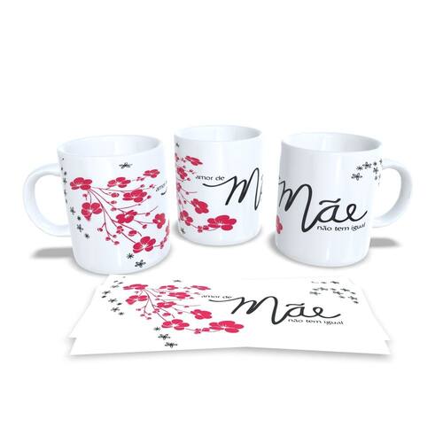 Caneca personalizada de porcelana de alto brilho, com interior e alça branca com linda Estampa da Coleção dia das Mães.