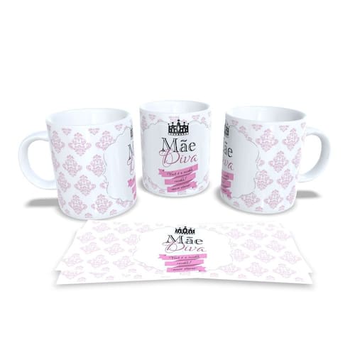 Caneca personalizada de porcelana de alto brilho, com interior e alça branca com linda Estampa da Coleção dia das Mães.