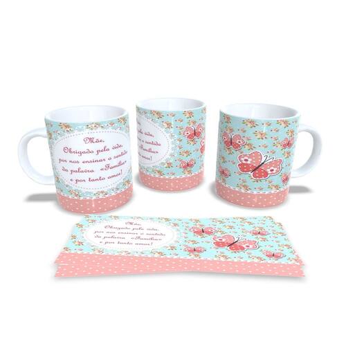 Caneca personalizada de porcelana de alto brilho, com interior e alça branca com linda Estampa da Coleção dia das Mães.