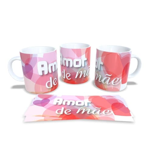 Caneca personalizada de porcelana de alto brilho, com interior e alça branca com linda Estampa da Coleção dia das Mães.
