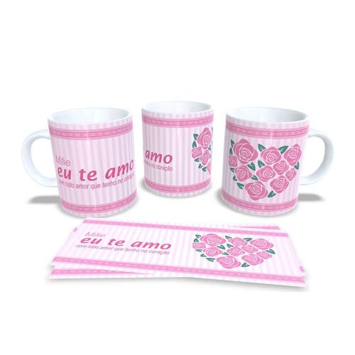 Caneca personalizada de porcelana de alto brilho, com interior e alça branca com linda Estampa da Coleção dia das Mães.