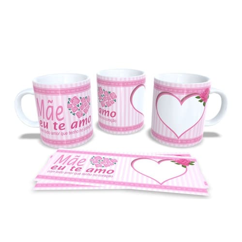 Caneca personalizada de porcelana de alto brilho, com interior e alça branca com linda Estampa da Coleção dia das Mães.