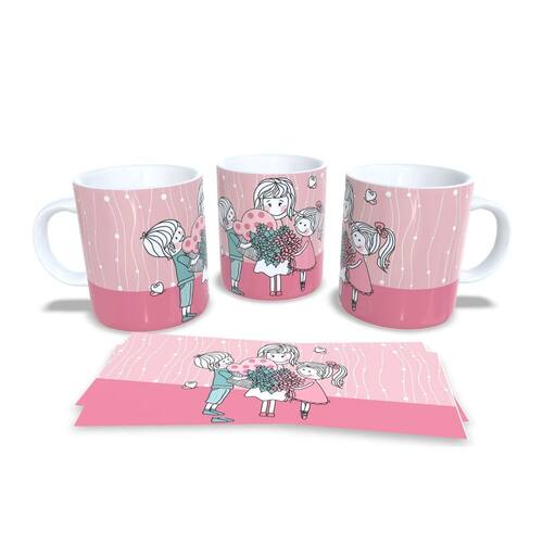 Caneca personalizada de porcelana de alto brilho, com interior e alça branca com linda Estampa da Coleção dia das Mães.