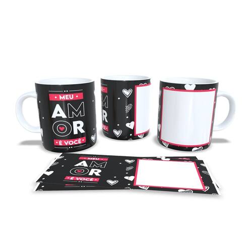 Caneca personalizada de porcelana de alto brilho, com interior e alça branca com linda Estampa da Coleção Dia dos Namorados.