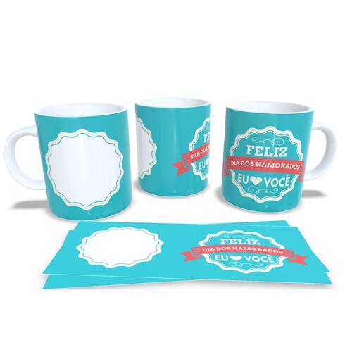 Caneca personalizada de porcelana de alto brilho, com interior e alça branca com linda Estampa da Coleção Dia dos Namorados.