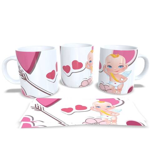 aneca personalizada de porcelana de alto brilho, com interior e alça branca com linda Estampa da Coleção Dia dos Namorados.