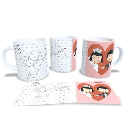 aneca personalizada de porcelana de alto brilho, com interior e alça branca com linda Estampa da Coleção Dia dos Namorados.
