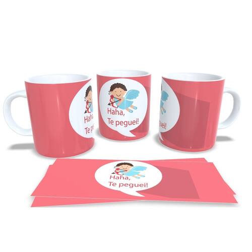 aneca personalizada de porcelana de alto brilho, com interior e alça branca com linda Estampa da Coleção Dia dos Namorados.