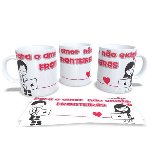 aneca personalizada de porcelana de alto brilho, com interior e alça branca com linda Estampa da Coleção Dia dos Namorados.