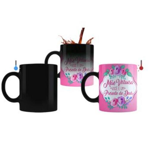 Caneca mágica de porcelana termosensível com interior branco, com estampa do dia das Mães.