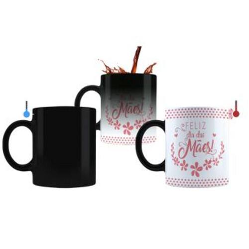Caneca mágica de porcelana termosensível com interior branco, com estampa do dia das Mães.