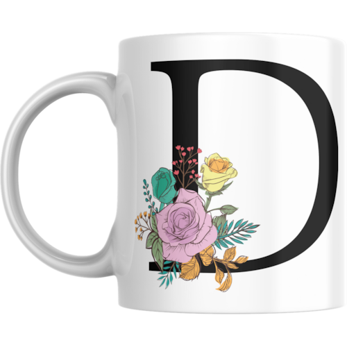 Caneca personalizada de porcelana de alto brilho, com interior e alça branca com linda Estampa Alfabeto Black.