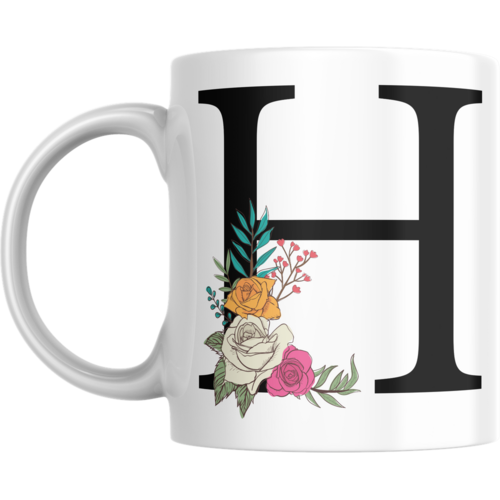 Caneca personalizada de porcelana de alto brilho, com interior e alça branca com linda Estampa Alfabeto Black.