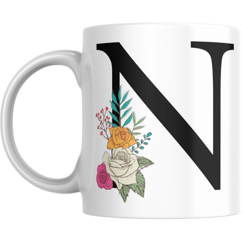 Caneca personalizada de porcelana de alto brilho, com interior e alça branca com linda Estampa Alfabeto Black.