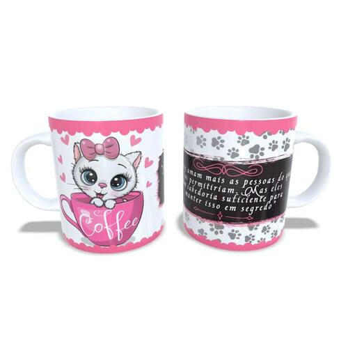Caneca personalizada de porcelana de alto brilho, com interior e Alça branca Coleção Cães e Gatos.