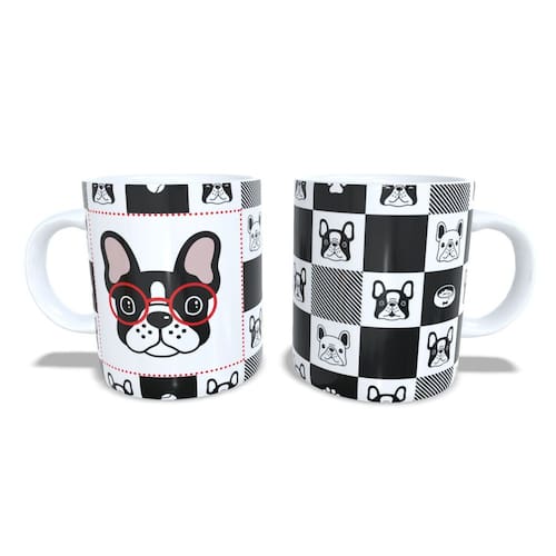 Caneca personalizada de porcelana de alto brilho, com interior e Alça branca Coleção Cães e Gatos.