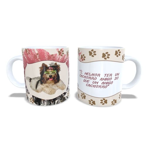 Caneca personalizada de porcelana de alto brilho, com interior e Alça branca Coleção Cães e Gatos.