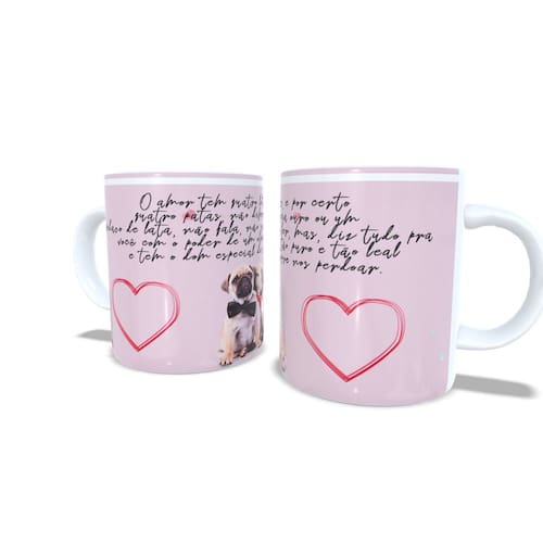 Caneca personalizada de porcelana de alto brilho, com interior e Alça branca Coleção Cães e Gatos.