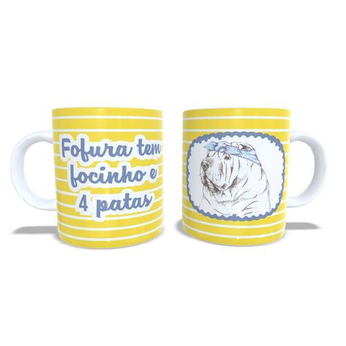 Caneca personalizada de porcelana de alto brilho, com interior e Alça branca Coleção Cães e Gatos.
