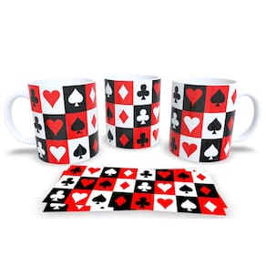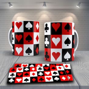 Caneca personalizada de porcelana de alto brilho, com interior e Alça branca Coleção Cartas de baralho.