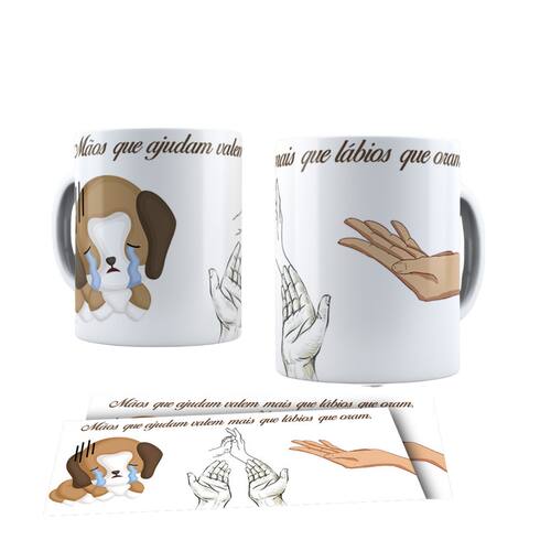 Caneca personalizada de porcelana de alto brilho, com interior e alça Branca Coleção Animais.