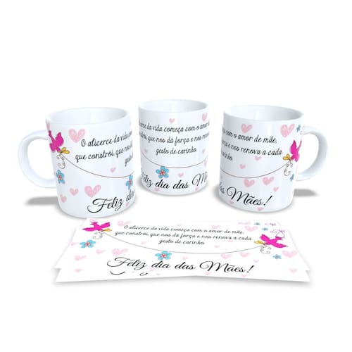 Caneca personalizada de porcelana de alto brilho, com interior e alça branca com linda Estampa da Coleção dia das Mães.