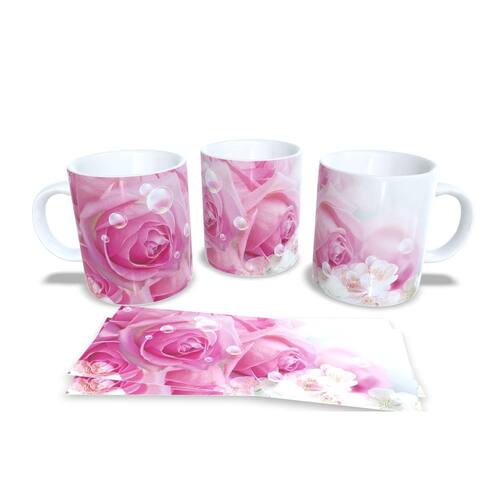 Caneca personalizada de porcelana de alto brilho, com interior e alça branca com linda Estampa da Coleção Flores.