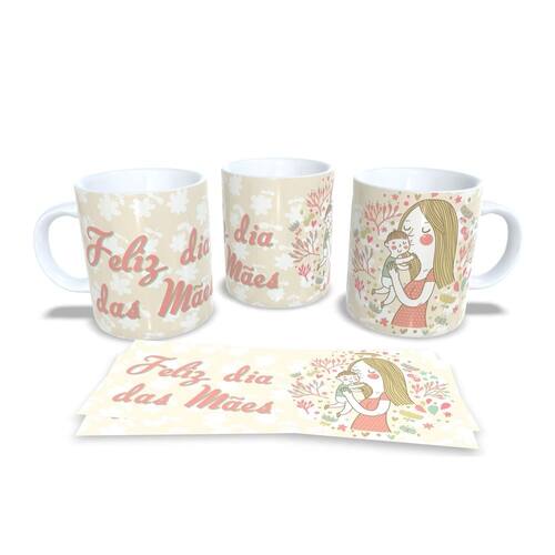 Caneca personalizada de porcelana de alto brilho, com interior e alça branca com linda Estampa da Coleção dia das Mães.