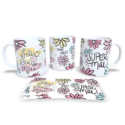 Caneca personalizada de porcelana de alto brilho, com interior e Alça branca Coleção Dia das Mães.