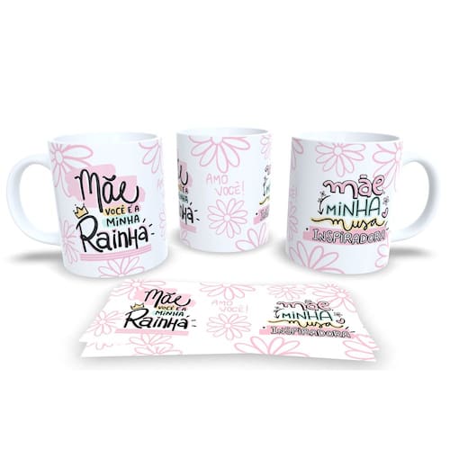 Caneca personalizada de porcelana de alto brilho, com interior e Alça branca Coleção Dia das Mães.