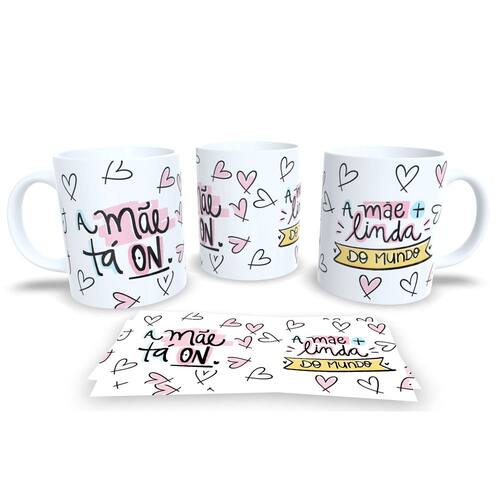 Caneca personalizada de porcelana de alto brilho, com interior e Alça branca Coleção Dia das Mães.