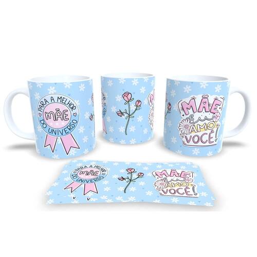 Caneca personalizada de porcelana de alto brilho, com interior e Alça branca Coleção Dia das Mães.