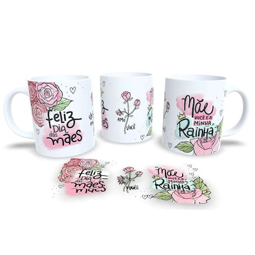 Caneca personalizada de porcelana de alto brilho, com interior e Alça branca Coleção Dia das Mães.