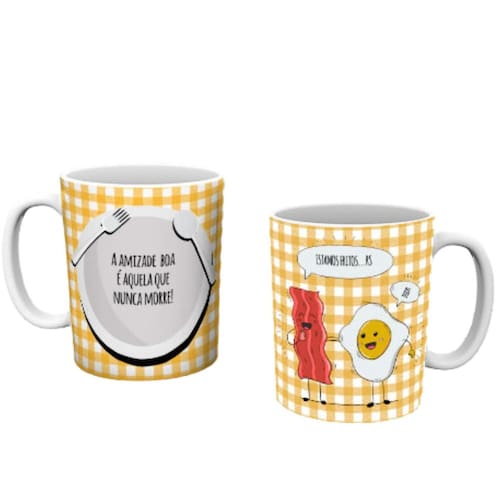 Caneca personalizada de porcelana de alto brilho, com interior e Alça branca Coleção Dia dos Amigos.