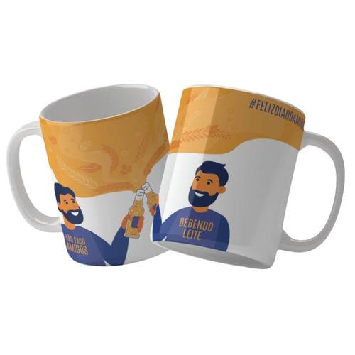 Caneca personalizada de porcelana de alto brilho, com interior e Alça branca Coleção Dia dos Amigos.