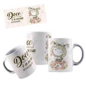 Caneca personalizada de porcelana de alto brilho, com interior e Alça branca Coleção Dia dos Amigos.
