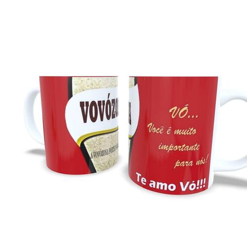 Caneca personalizada de porcelana de alto brilho, com interior e Alça branca Coleção Dia dos Avós.