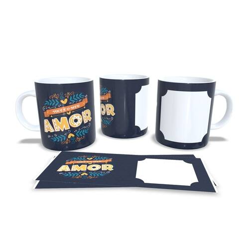 Caneca personalizada de porcelana de alto brilho, com interior e alça branca com linda Estampa da Coleção Dia dos Namorados.