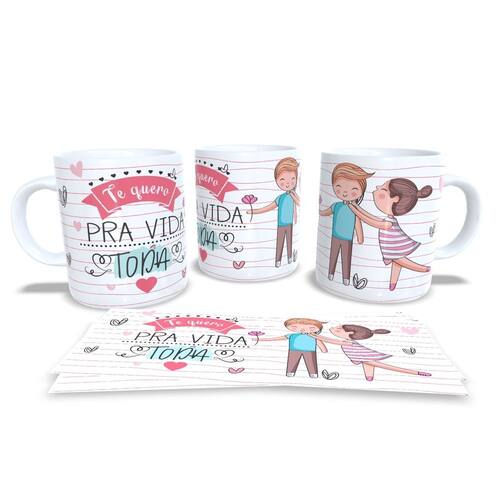 Caneca personalizada de porcelana de alto brilho, com interior e alça branca com linda Estampa da Coleção Dia dos Namorados.