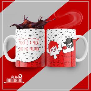 Caneca personalizada de porcelana de alto brilho, com interior e Alça branca Coleção Dia dos Namorados.