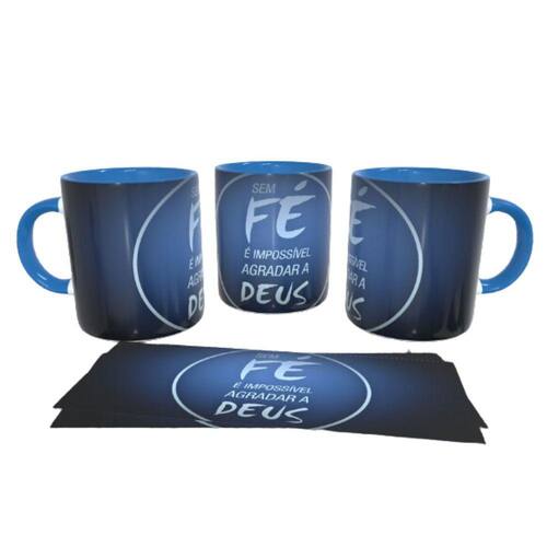 Caneca personalizada de porcelana de alto brilho, com interior e alça Azul com linda Estampa Tema Evangelico.