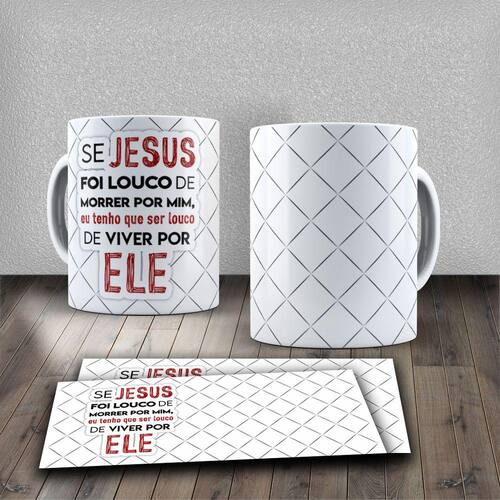 Caneca personalizada de porcelana de alto brilho, com interior e alça branca com linda Estampa Tema Evangelico "Ele Vive".