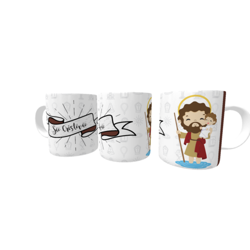 Caneca de porcelana de alto brilho, com alça e interior branca Coleção Santos da Igreja Catolica.