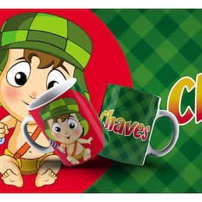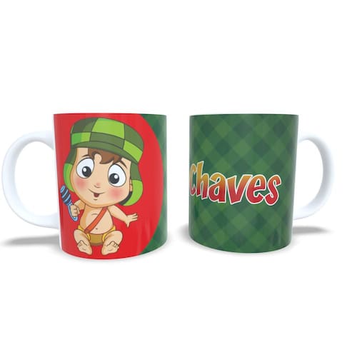 Caneca personalizada de porcelana de alto brilho, com interior e Alça branca Coleção Chaves Baby.