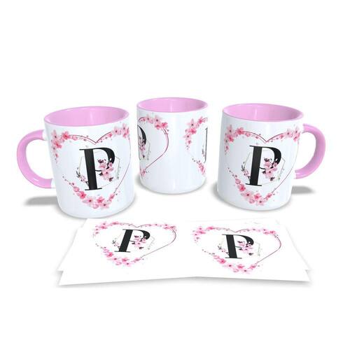 Canecas Rosa Coleção Alfabeto Gramur Com Coração A/Z Letra A
